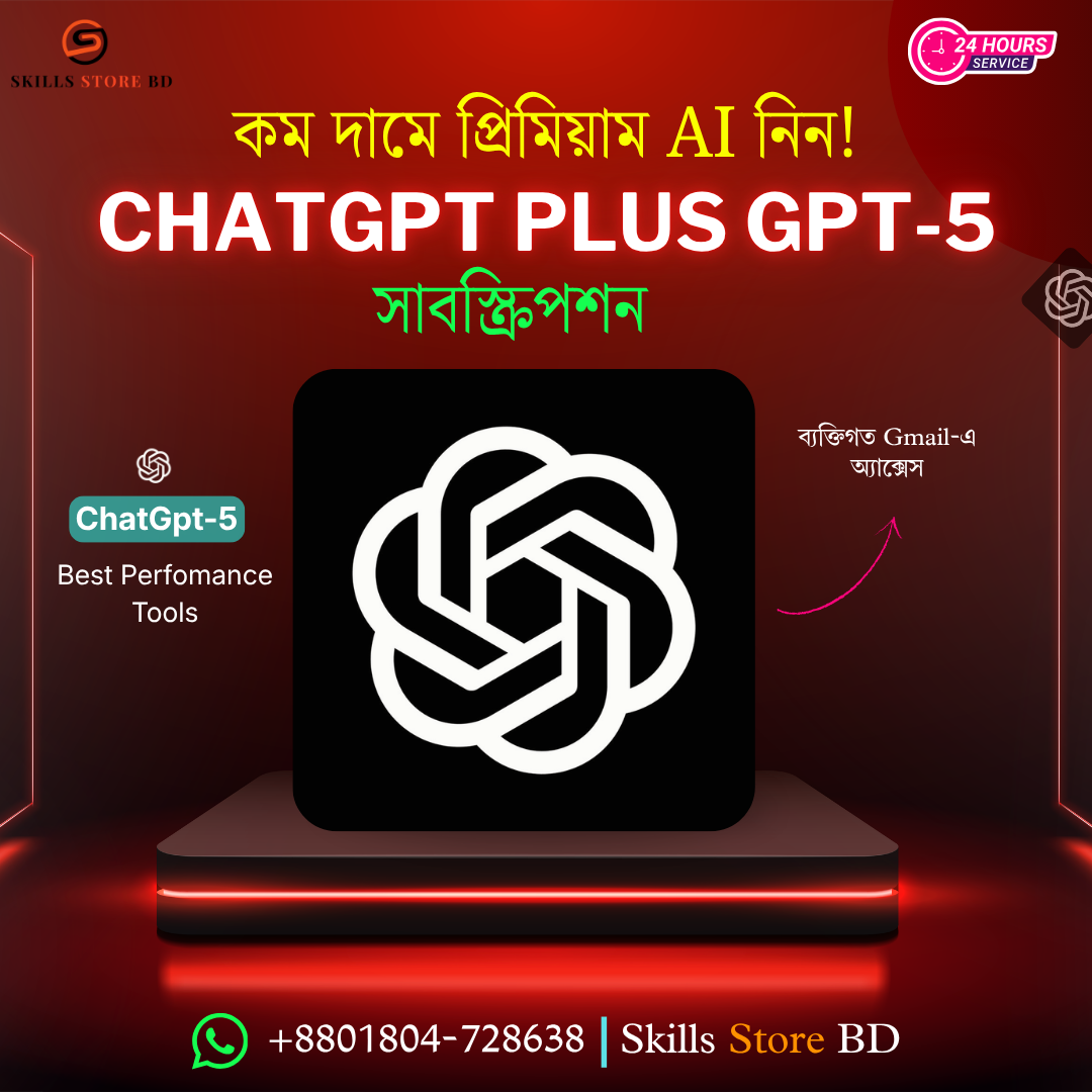 ChatGPT Plus ব্যবহার করে আপনার দৈনন্দিন কাজ, পড়াশোনা, কনটেন্ট তৈরি এবং অনলাইন কাজগুলোকে করুন আরও দ্রুত, স্মার্ট এবং প্রফেশনাল।