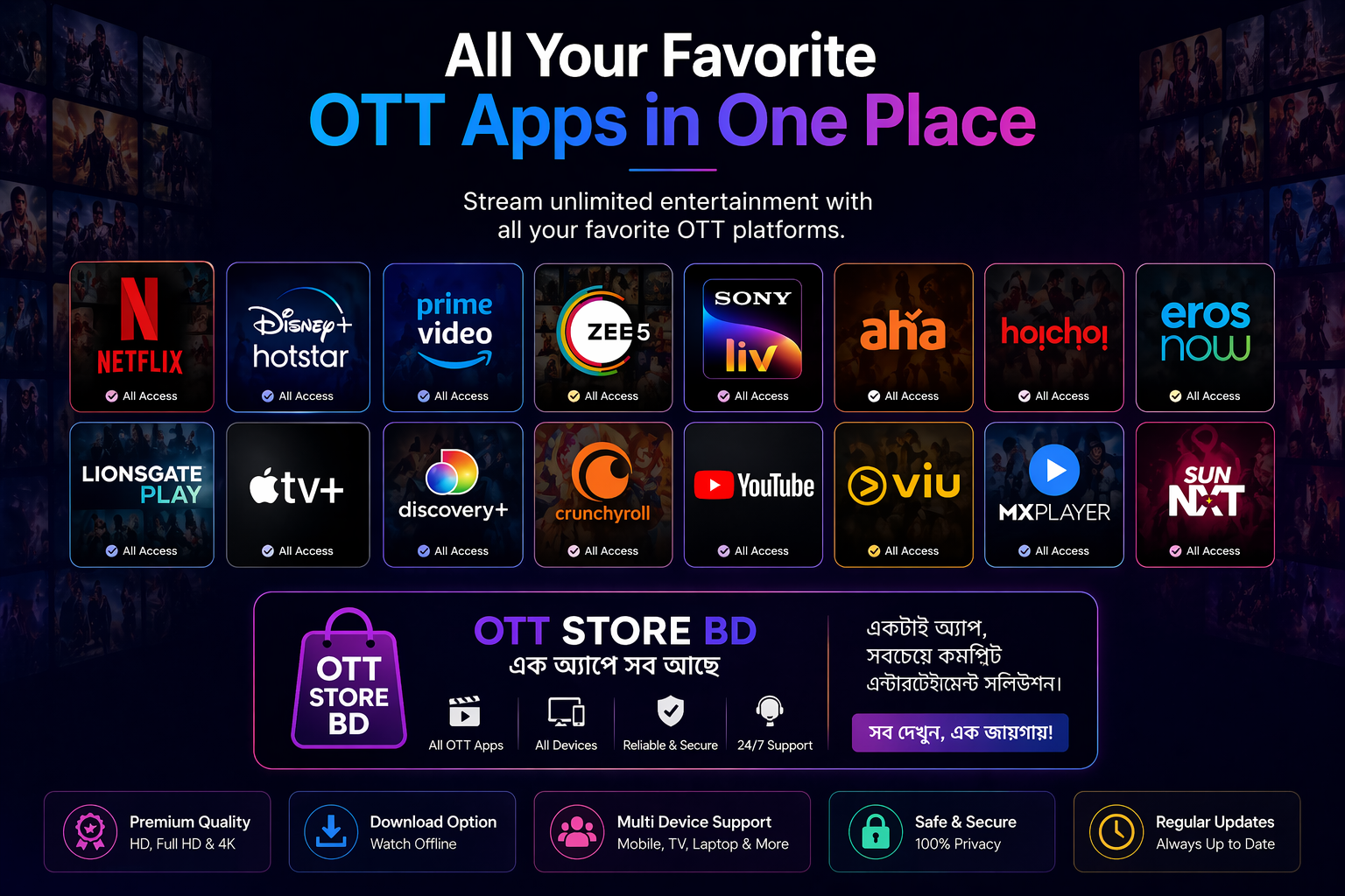 OTT Store BD – আপনার প্রিমিয়াম এন্টারটেইনমেন্টের সম্পূর্ণ সমাধান 📺✨